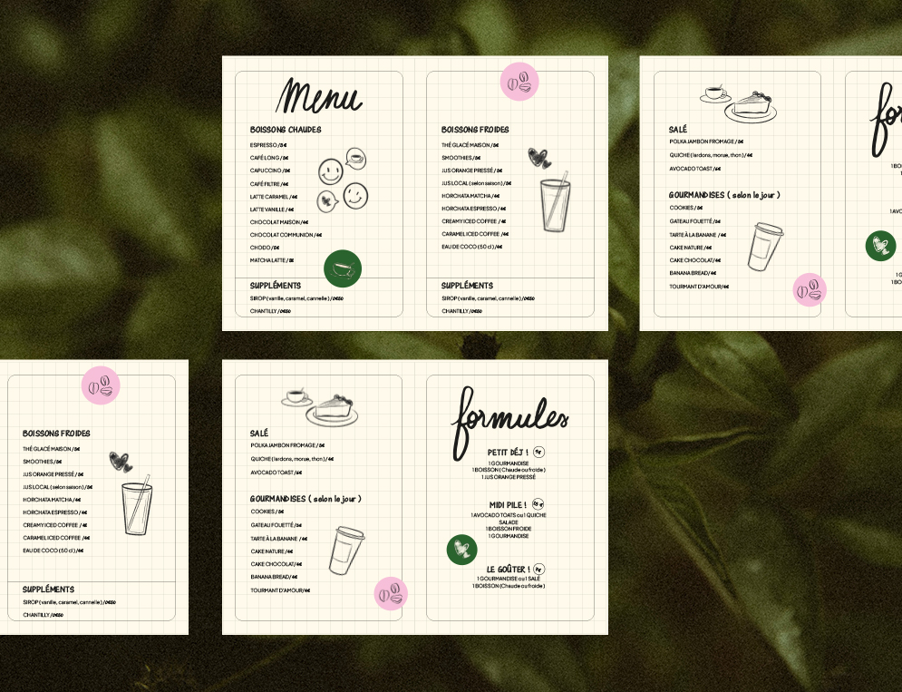 Création de l’identité visuelle d’un coffee shop en Guadeloupe. L’objectif de ce projet était de concevoir une image de marque moderne et distinctive, capable de se démarquer des coffee shops déjà présents sur l’île. J’ai souhaité apporter une touche de fraîcheur et de modernité, tout en construisant un univers visuel cohérent et attractif.